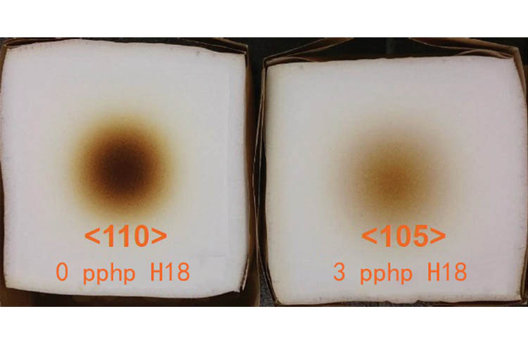 與市場上的其他硬化添加劑不同,nt add h18可顯著提高硬度,同時(shí)不影響泡沫的孔結(jié)構(gòu)。當(dāng)nt add h18添加到配方中時(shí),沒有必要改變tdi或錫的量來維持開孔結(jié)構(gòu)。使用量為1至5pphp,取決于所需的硬度增加。取決于泡沫密度,配方和生產(chǎn)參數(shù),可以在不顯著改變孔結(jié)構(gòu)的情況下提高35%的硬度。